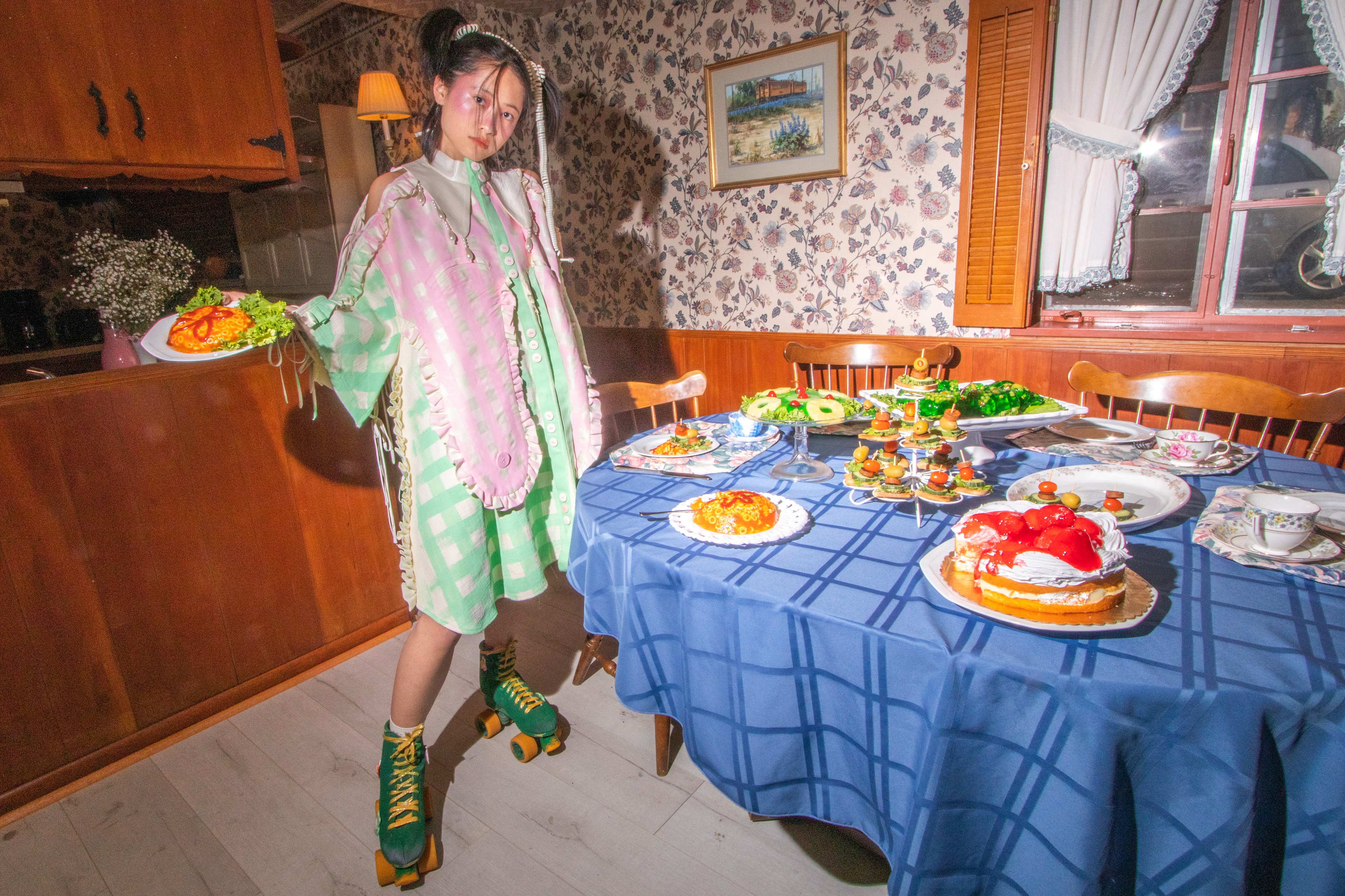 On set photographs for the fashion film "
